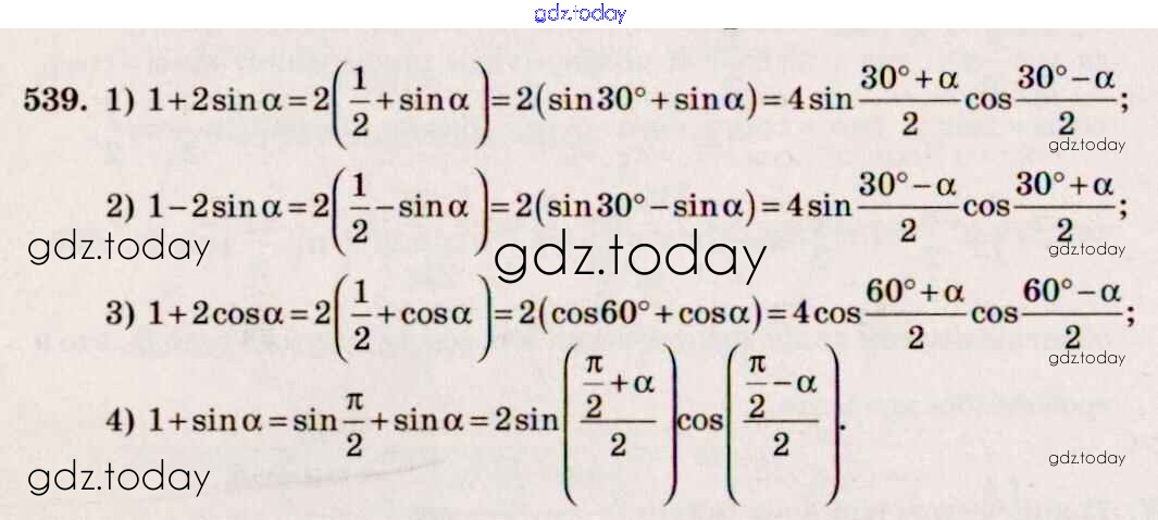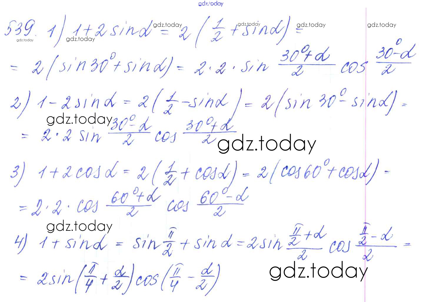 Ответы к Решение к упражнениям 539 Учебнику по Алгебре для 10-11 класса Алимов, Ткачева Базовый и углубленный уровень Просвещение 2015