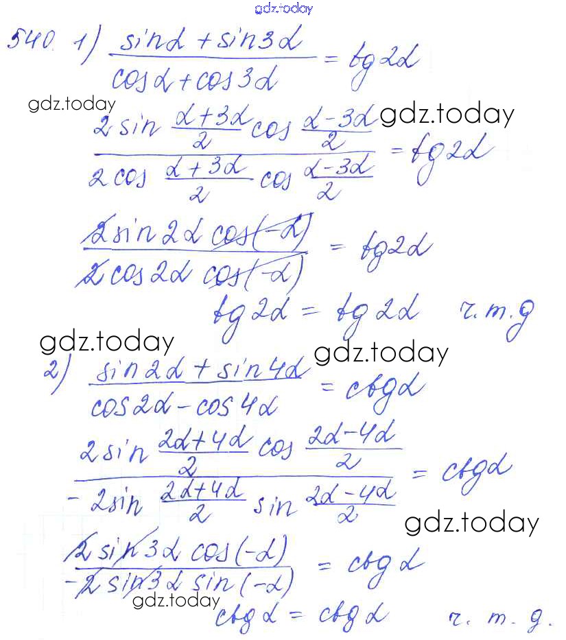 На страницах сайта gdz.today вы найдете учебный и вспомогательный материал, направленный на улучшения знаний школьной программы. ГДЗ - онлайн мир знаний Решение к упражнениям 540 Учебнику по Алгебре для 10-11 класса Алимов, Ткачева Базовый и углубленный уровень Просвещение 2015