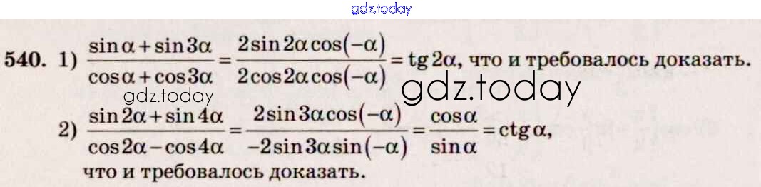 Ответы к Решение к упражнениям 540 Учебнику по Алгебре для 10-11 класса Алимов, Ткачева Базовый и углубленный уровень Просвещение 2015