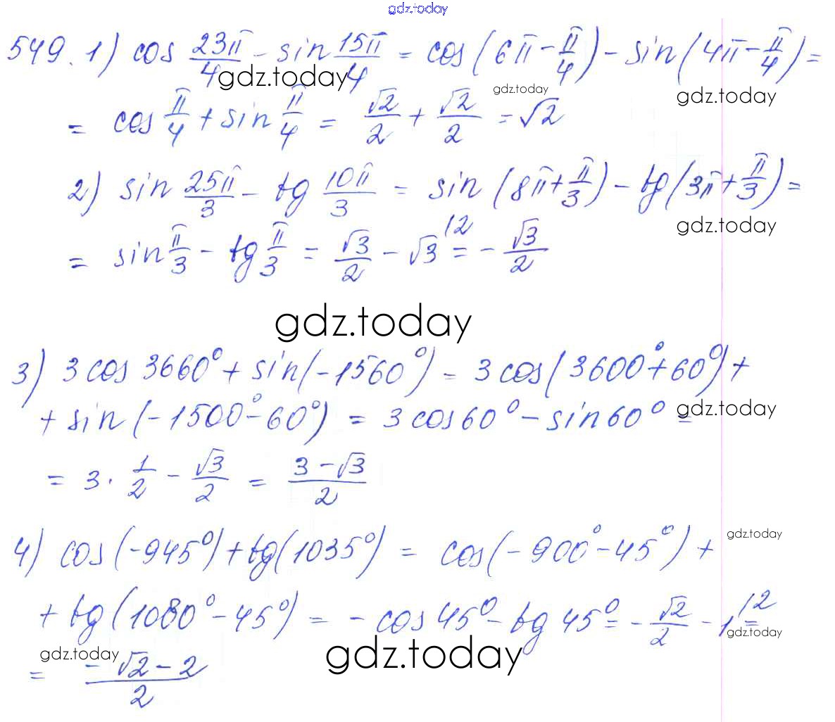 Ответы к Решение к упражнениям 549 Учебнику по Алгебре для 10-11 класса Алимов, Ткачева Базовый и углубленный уровень Просвещение 2015