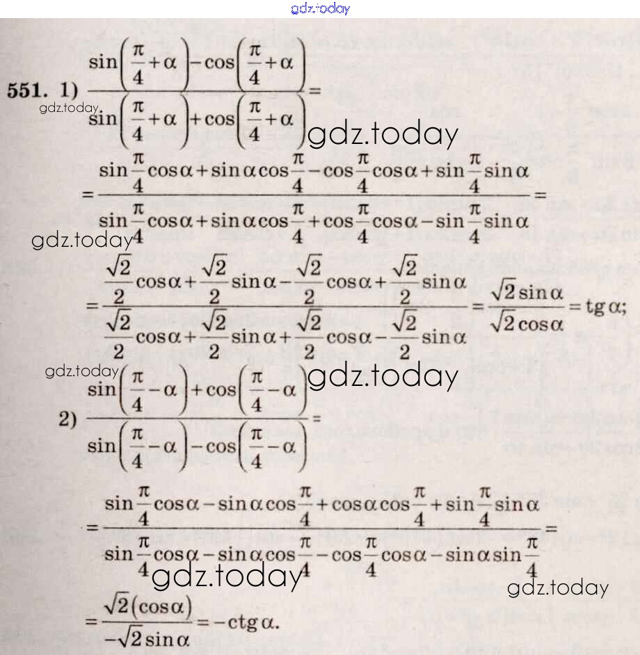 Ответы к Решение к упражнениям 551 Учебнику по Алгебре для 10-11 класса Алимов, Ткачева Базовый и углубленный уровень Просвещение 2015