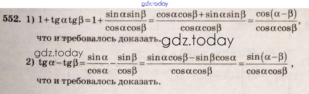 Ответы к Решение к упражнениям 552 Учебнику по Алгебре для 10-11 класса Алимов, Ткачева Базовый и углубленный уровень Просвещение 2015