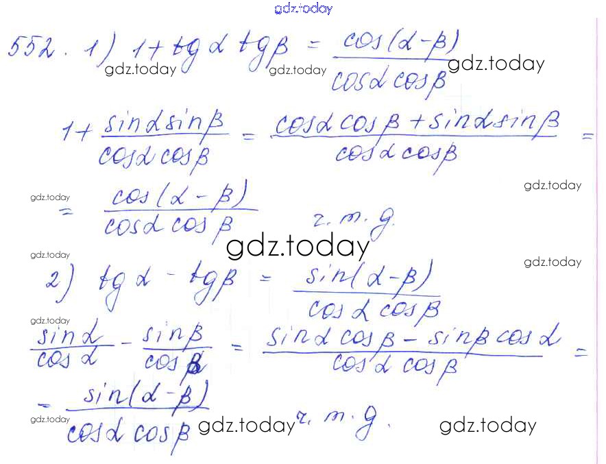 На страницах сайта gdz.today вы найдете учебный и вспомогательный материал, направленный на улучшения знаний школьной программы. ГДЗ - онлайн мир знаний Решение к упражнениям 552 Учебнику по Алгебре для 10-11 класса Алимов, Ткачева Базовый и углубленный уровень Просвещение 2015