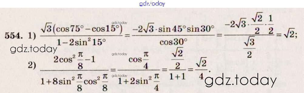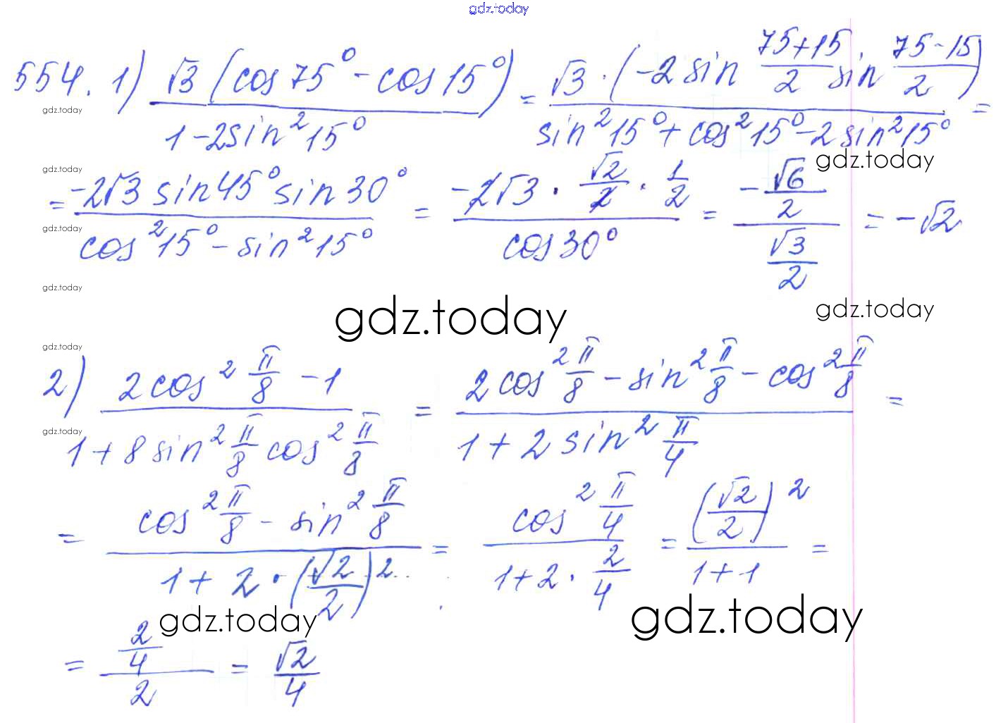 Ответы к Решение к упражнениям 554 Учебнику по Алгебре для 10-11 класса Алимов, Ткачева Базовый и углубленный уровень Просвещение 2015