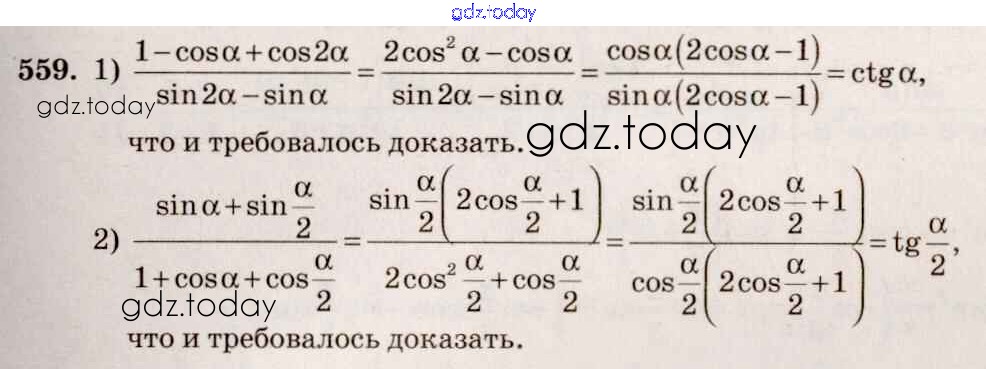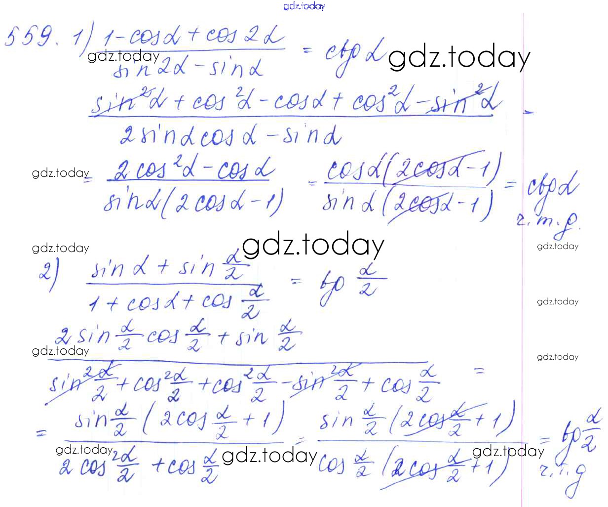 Ответы к Решение к упражнениям 559 Учебнику по Алгебре для 10-11 класса Алимов, Ткачева Базовый и углубленный уровень Просвещение 2015