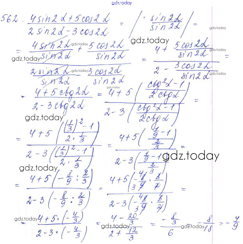 Ответы к Решение к упражнениям 562 Учебнику по Алгебре для 10-11 класса Алимов, Ткачева Базовый и углубленный уровень Просвещение 2015