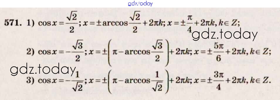Ответы к Решение к упражнениям 571 Учебнику по Алгебре для 10-11 класса Алимов, Ткачева Базовый и углубленный уровень Просвещение 2015