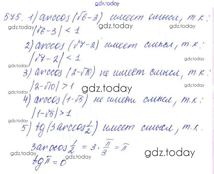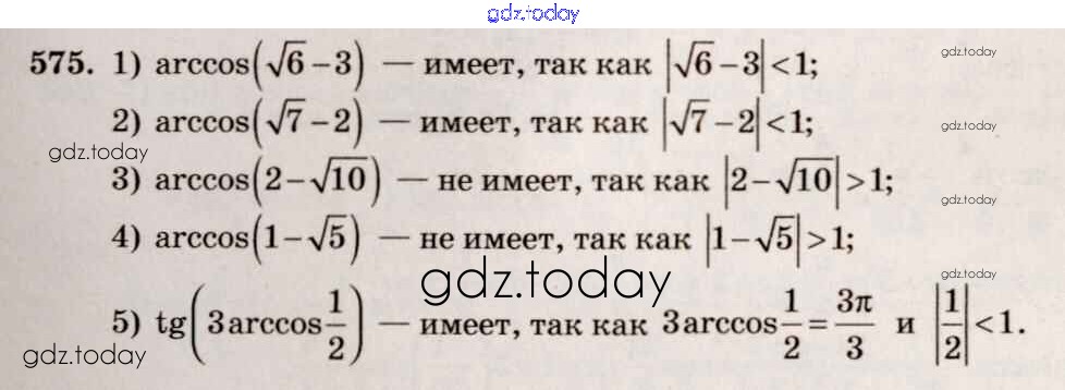 Ответы к Решение к упражнениям 575 Учебнику по Алгебре для 10-11 класса Алимов, Ткачева Базовый и углубленный уровень Просвещение 2015