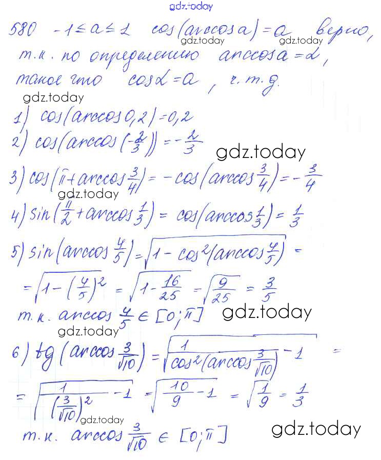 Ответы к Решение к упражнениям 580 Учебнику по Алгебре для 10-11 класса Алимов, Ткачева Базовый и углубленный уровень Просвещение 2015