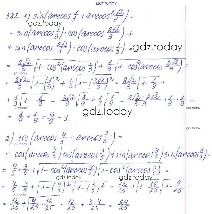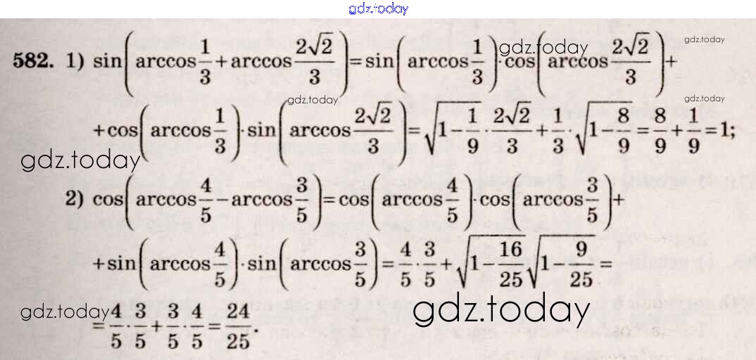 Ответы к Решение к упражнениям 582 Учебнику по Алгебре для 10-11 класса Алимов, Ткачева Базовый и углубленный уровень Просвещение 2015