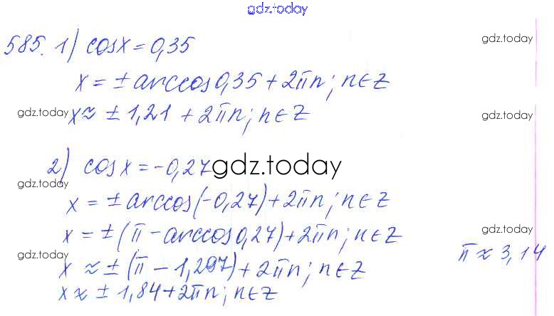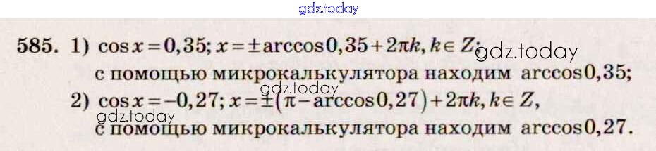 Ответы к Решение к упражнениям 585 Учебнику по Алгебре для 10-11 класса Алимов, Ткачева Базовый и углубленный уровень Просвещение 2015