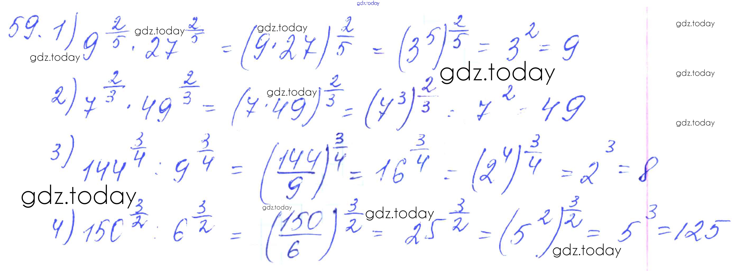 Ответы к Решение к упражнениям 59 Учебнику по Алгебре для 10-11 класса Алимов, Ткачева Базовый и углубленный уровень Просвещение 2015