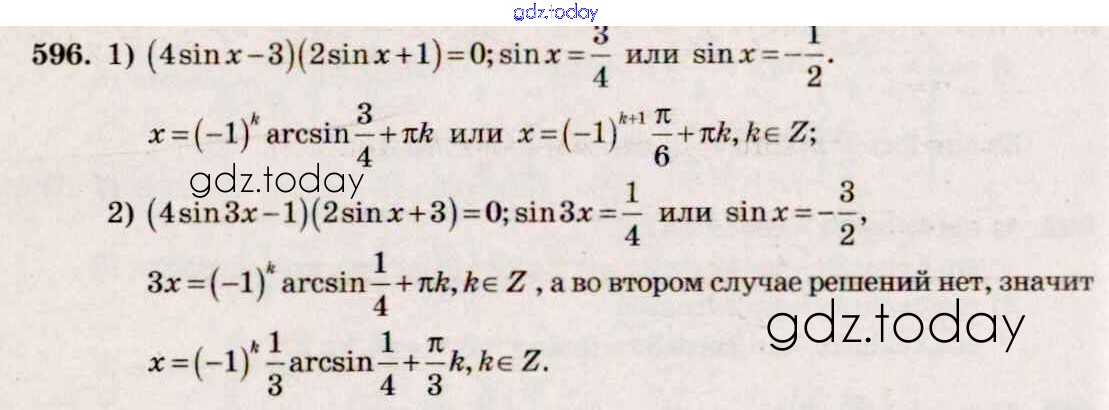 Ответы к Решение к упражнениям 596 Учебнику по Алгебре для 10-11 класса Алимов, Ткачева Базовый и углубленный уровень Просвещение 2015