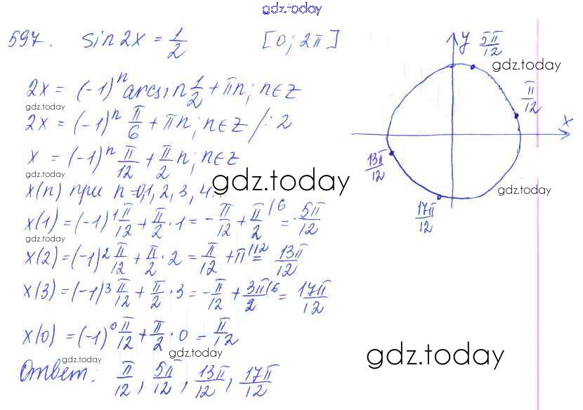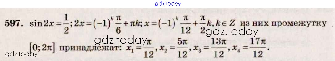Ответы к Решение к упражнениям 597 Учебнику по Алгебре для 10-11 класса Алимов, Ткачева Базовый и углубленный уровень Просвещение 2015