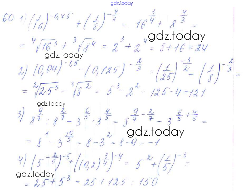 Ответы к Решение к упражнениям 60 Учебнику по Алгебре для 10-11 класса Алимов, Ткачева Базовый и углубленный уровень Просвещение 2015