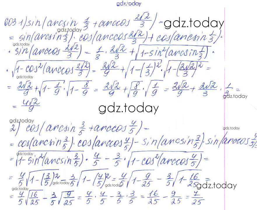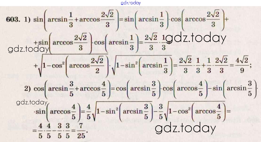 Ответы к Решение к упражнениям 603 Учебнику по Алгебре для 10-11 класса Алимов, Ткачева Базовый и углубленный уровень Просвещение 2015