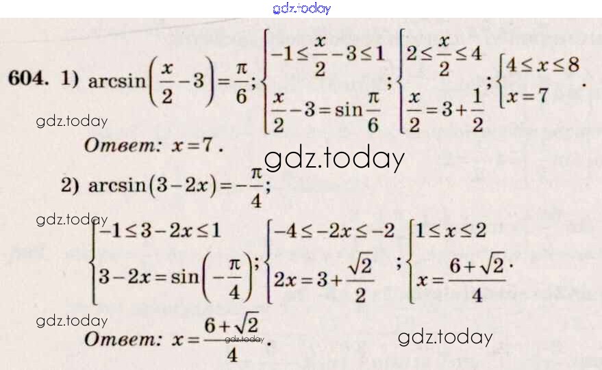 Ответы к Решение к упражнениям 604 Учебнику по Алгебре для 10-11 класса Алимов, Ткачева Базовый и углубленный уровень Просвещение 2015