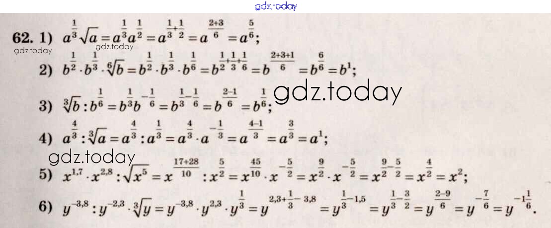 Ответы к Решение к упражнениям 62 Учебнику по Алгебре для 10-11 класса Алимов, Ткачева Базовый и углубленный уровень Просвещение 2015
