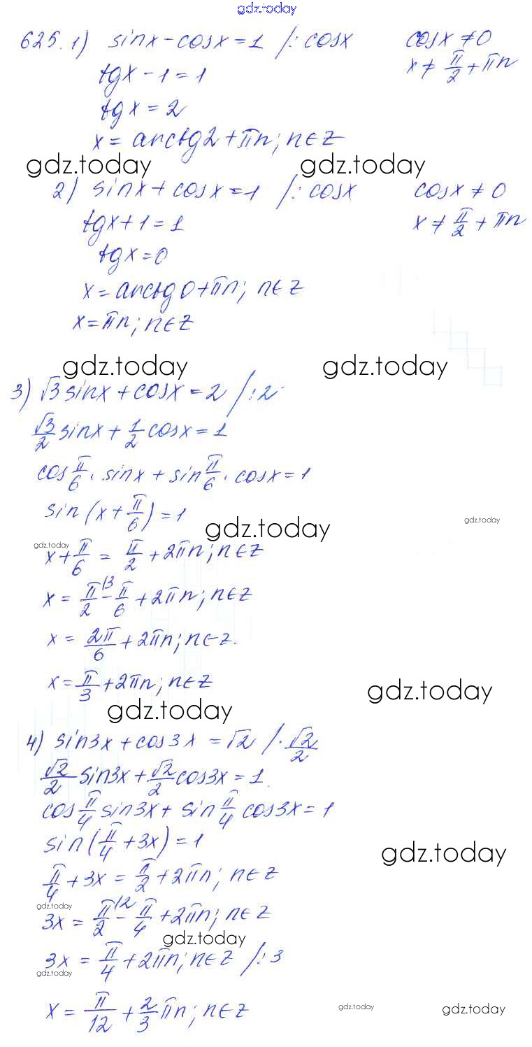 Ответы к Решение к упражнениям 625 Учебнику по Алгебре для 10-11 класса Алимов, Ткачева Базовый и углубленный уровень Просвещение 2015