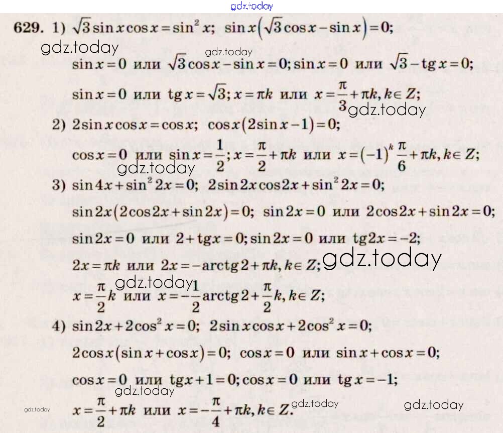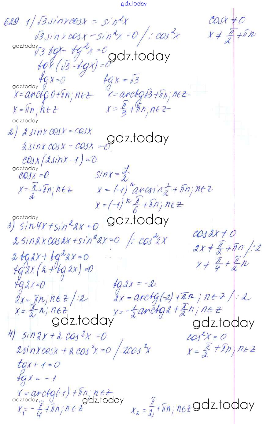 Ответы к Решение к упражнениям 629 Учебнику по Алгебре для 10-11 класса Алимов, Ткачева Базовый и углубленный уровень Просвещение 2015