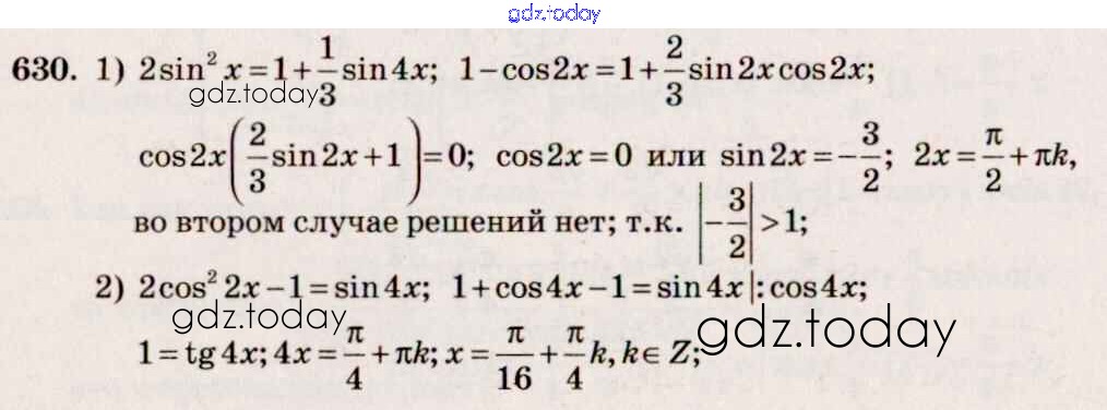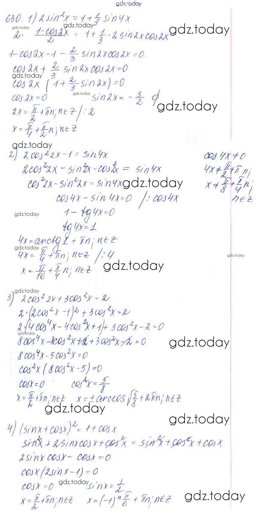 Ответы к Решение к упражнениям 630 Учебнику по Алгебре для 10-11 класса Алимов, Ткачева Базовый и углубленный уровень Просвещение 2015