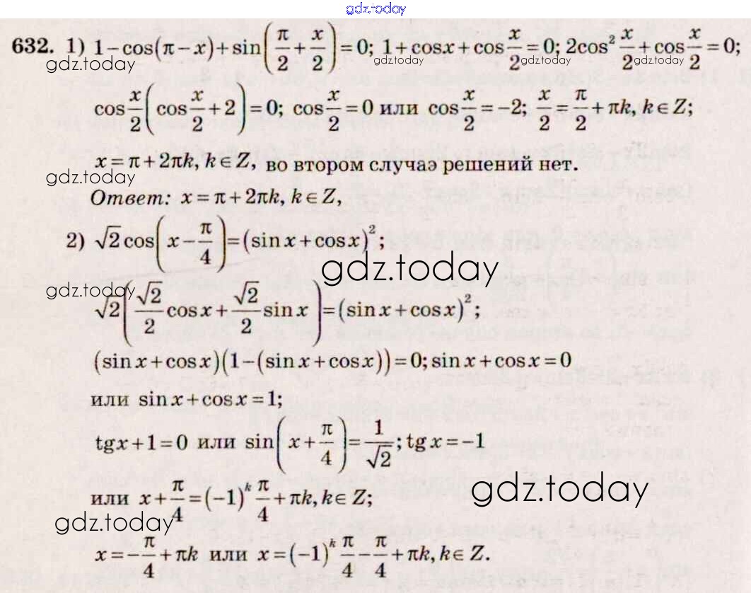 На страницах сайта gdz.today вы найдете учебный и вспомогательный материал, направленный на улучшения знаний школьной программы. ГДЗ - онлайн мир знаний Решение к упражнениям 632 Учебнику по Алгебре для 10-11 класса Алимов, Ткачева Базовый и углубленный уровень Просвещение 2015