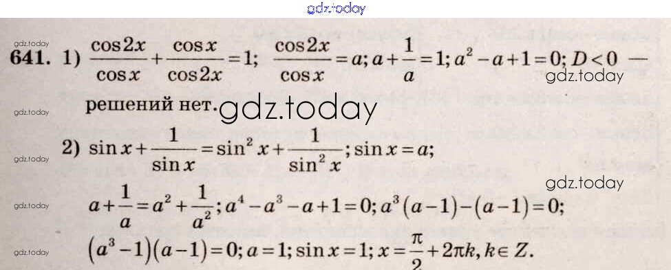 На страницах сайта gdz.today вы найдете учебный и вспомогательный материал, направленный на улучшения знаний школьной программы. ГДЗ - онлайн мир знаний Решение к упражнениям 641 Учебнику по Алгебре для 10-11 класса Алимов, Ткачева Базовый и углубленный уровень Просвещение 2015