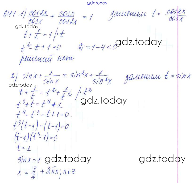 Ответы к Решение к упражнениям 641 Учебнику по Алгебре для 10-11 класса Алимов, Ткачева Базовый и углубленный уровень Просвещение 2015
