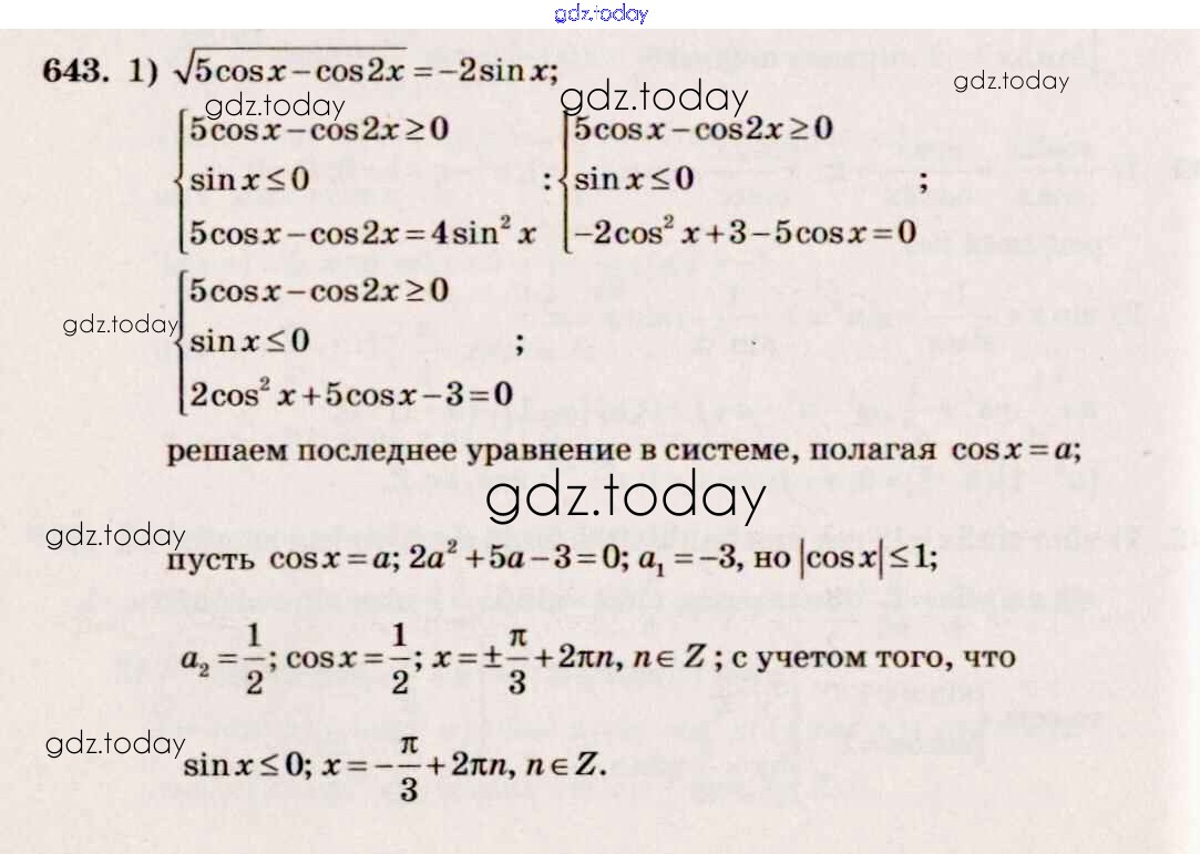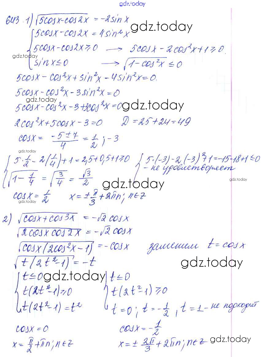 Ответы к Решение к упражнениям 643 Учебнику по Алгебре для 10-11 класса Алимов, Ткачева Базовый и углубленный уровень Просвещение 2015