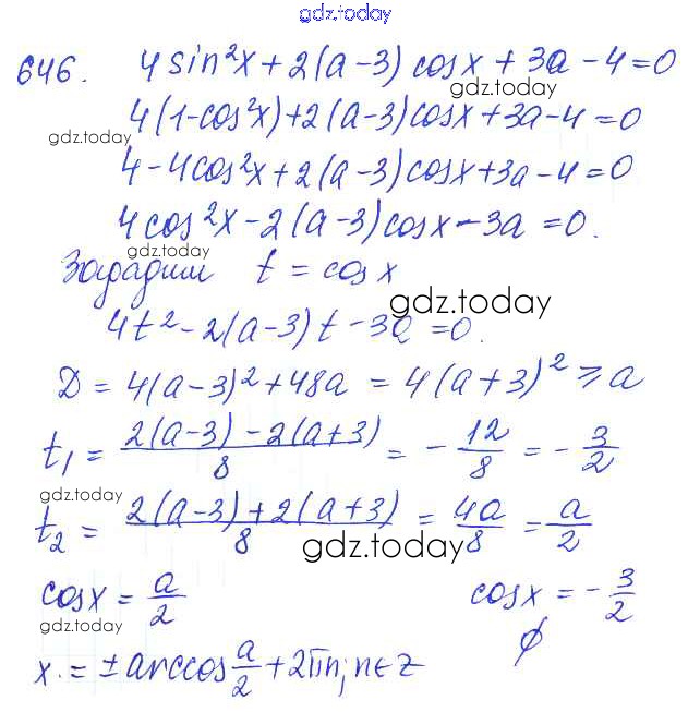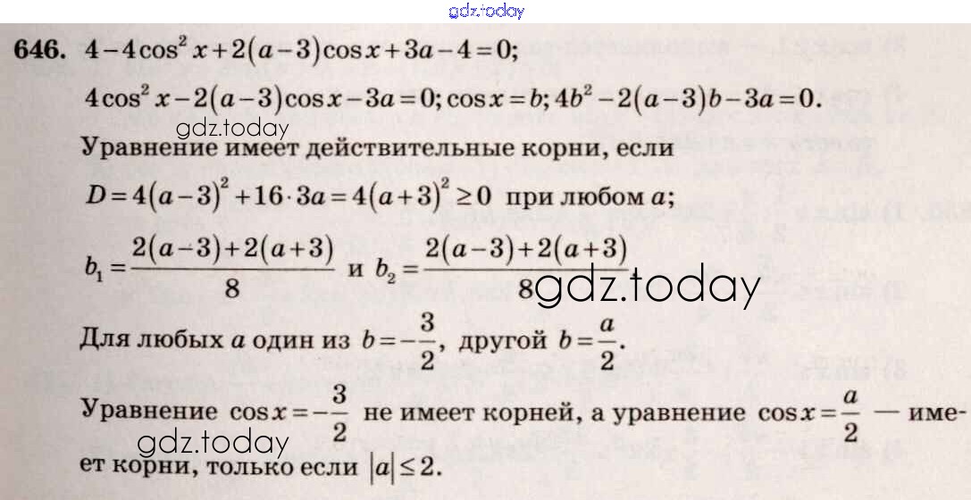 Ответы к Решение к упражнениям 646 Учебнику по Алгебре для 10-11 класса Алимов, Ткачева Базовый и углубленный уровень Просвещение 2015