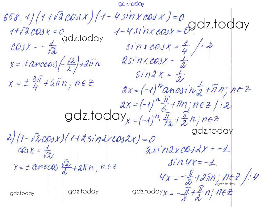 Ответы к Решение к упражнениям 658 Учебнику по Алгебре для 10-11 класса Алимов, Ткачева Базовый и углубленный уровень Просвещение 2015