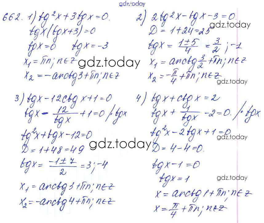 Ответы к Решение к упражнениям 662 Учебнику по Алгебре для 10-11 класса Алимов, Ткачева Базовый и углубленный уровень Просвещение 2015