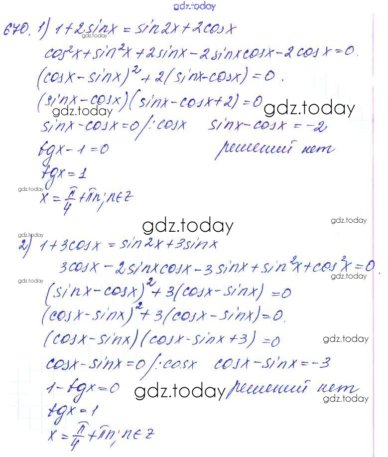 Ответы к Решение к упражнениям 670 Учебнику по Алгебре для 10-11 класса Алимов, Ткачева Базовый и углубленный уровень Просвещение 2015