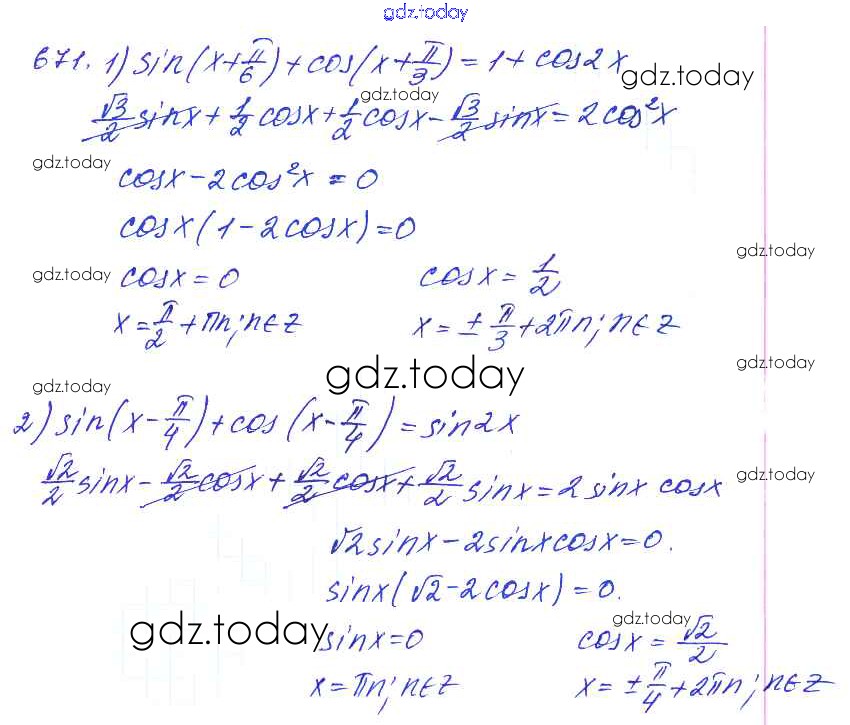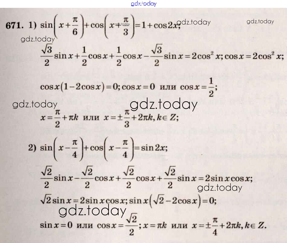 Ответы к Решение к упражнениям 671 Учебнику по Алгебре для 10-11 класса Алимов, Ткачева Базовый и углубленный уровень Просвещение 2015