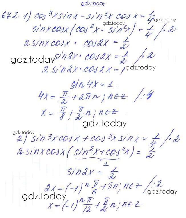 Ответы к Решение к упражнениям 672 Учебнику по Алгебре для 10-11 класса Алимов, Ткачева Базовый и углубленный уровень Просвещение 2015