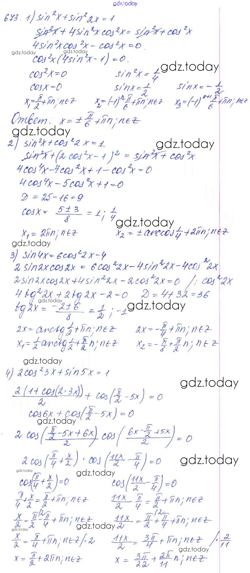 Ответы к Решение к упражнениям 673 Учебнику по Алгебре для 10-11 класса Алимов, Ткачева Базовый и углубленный уровень Просвещение 2015