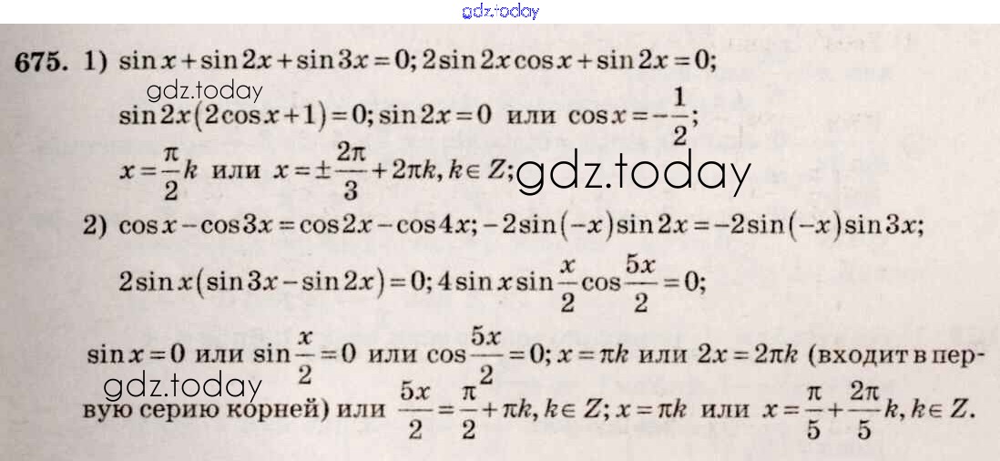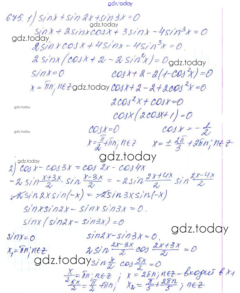Ответы к Решение к упражнениям 675 Учебнику по Алгебре для 10-11 класса Алимов, Ткачева Базовый и углубленный уровень Просвещение 2015