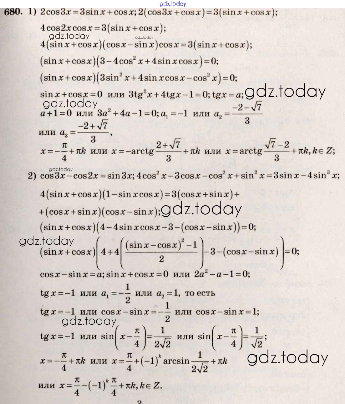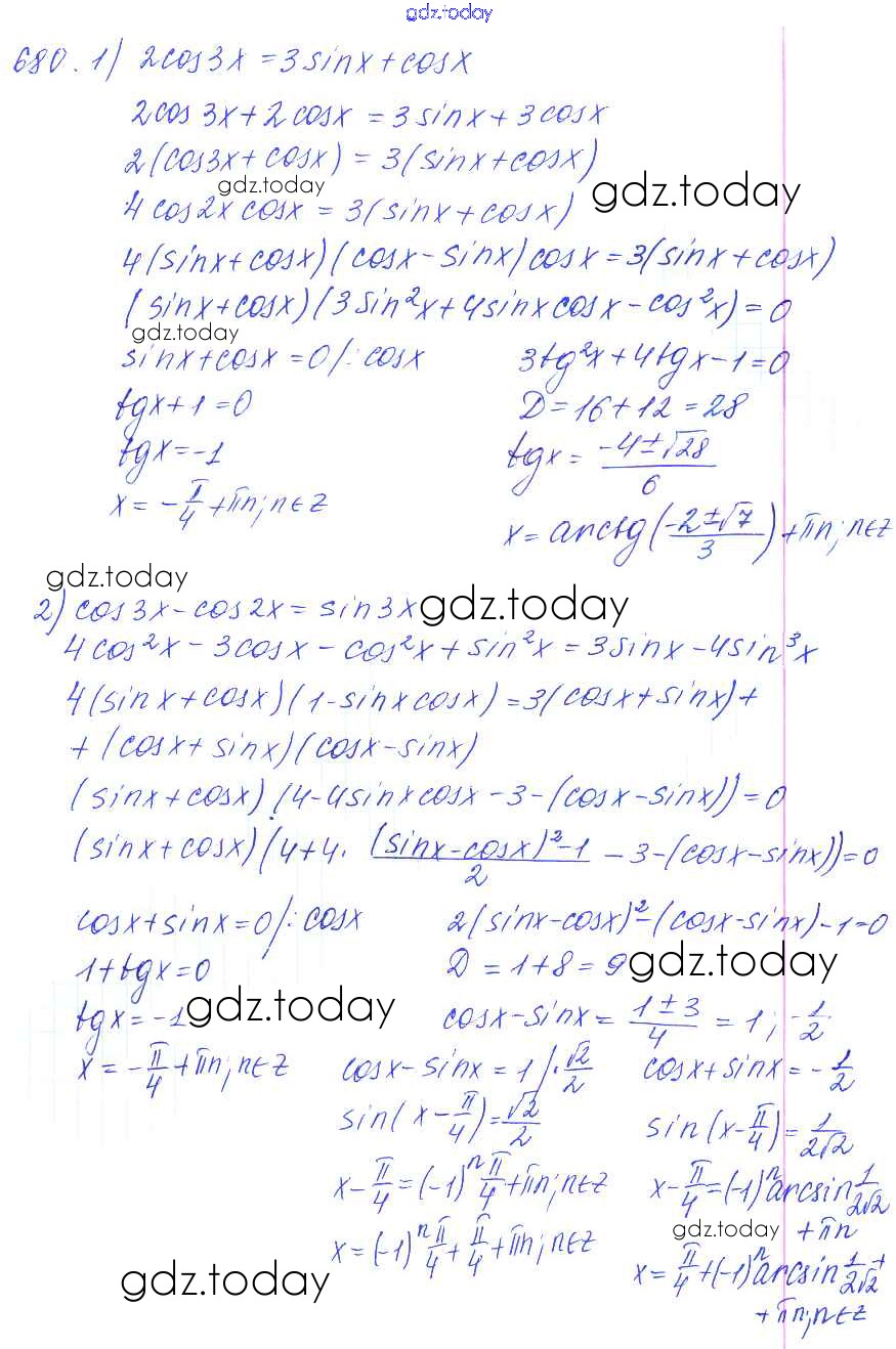 Ответы к Решение к упражнениям 680 Учебнику по Алгебре для 10-11 класса Алимов, Ткачева Базовый и углубленный уровень Просвещение 2015