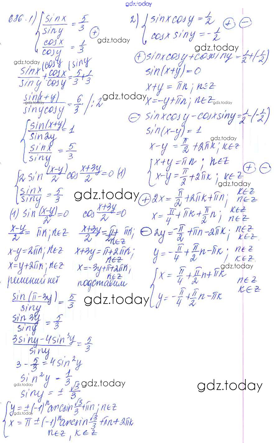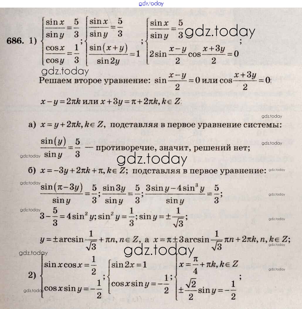 Ответы к Решение к упражнениям 686 Учебнику по Алгебре для 10-11 класса Алимов, Ткачева Базовый и углубленный уровень Просвещение 2015