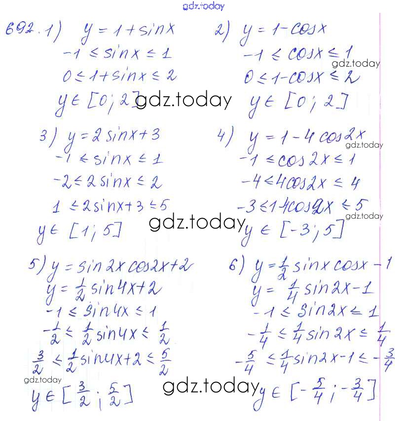 Ответы к Решение к упражнениям 692 Учебнику по Алгебре для 10-11 класса Алимов, Ткачева Базовый и углубленный уровень Просвещение 2015