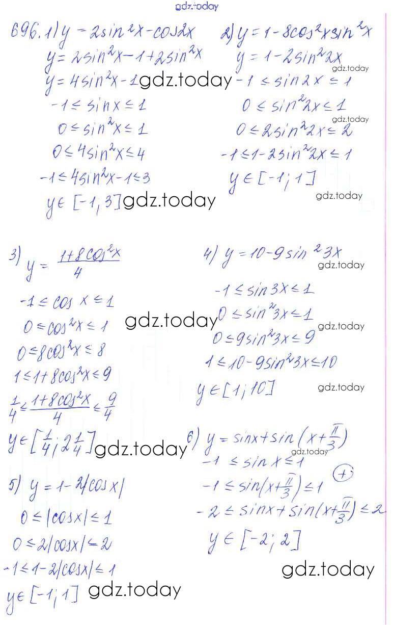 Ответы к Решение к упражнениям 696 Учебнику по Алгебре для 10-11 класса Алимов, Ткачева Базовый и углубленный уровень Просвещение 2015