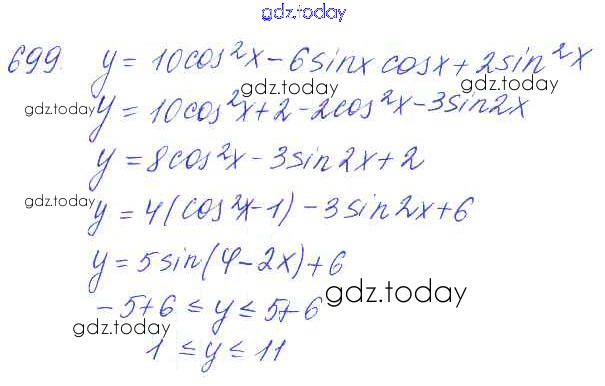 Ответы к Решение к упражнениям 699 Учебнику по Алгебре для 10-11 класса Алимов, Ткачева Базовый и углубленный уровень Просвещение 2015