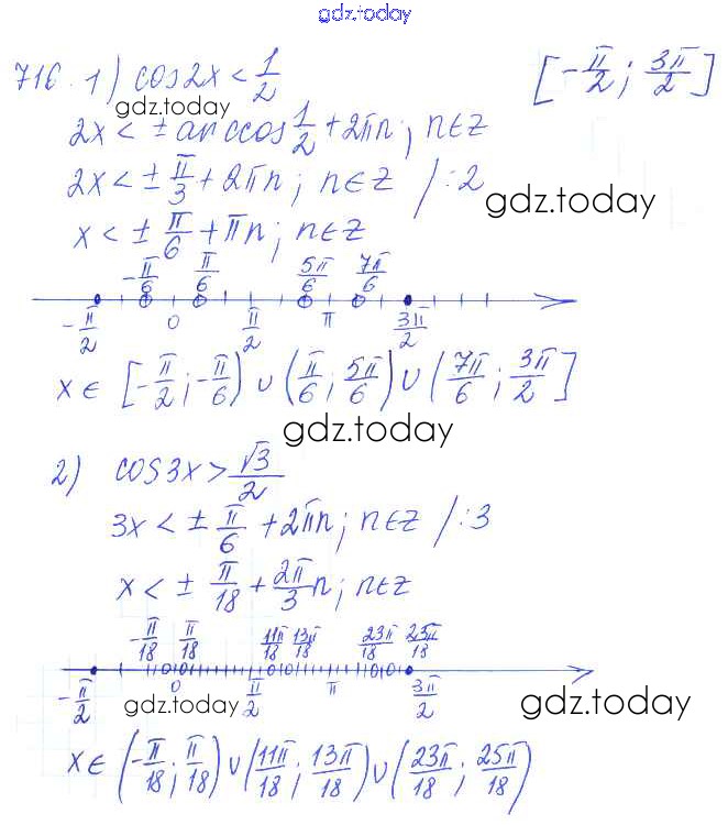Ответы к Решение к упражнениям 716 Учебнику по Алгебре для 10-11 класса Алимов, Ткачева Базовый и углубленный уровень Просвещение 2015