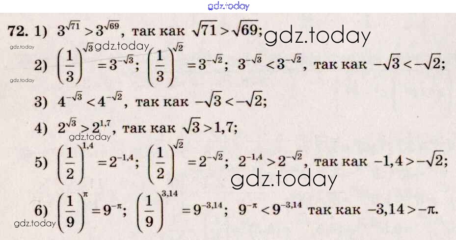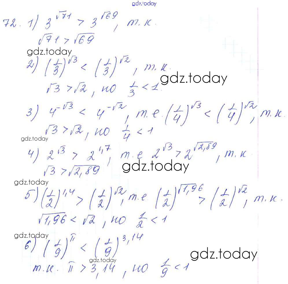 Ответы к Решение к упражнениям 72 Учебнику по Алгебре для 10-11 класса Алимов, Ткачева Базовый и углубленный уровень Просвещение 2015
