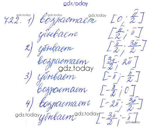 Ответы к Решение к упражнениям 722 Учебнику по Алгебре для 10-11 класса Алимов, Ткачева Базовый и углубленный уровень Просвещение 2015