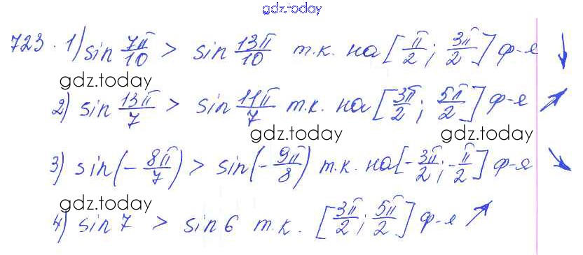Ответы к Решение к упражнениям 723 Учебнику по Алгебре для 10-11 класса Алимов, Ткачева Базовый и углубленный уровень Просвещение 2015