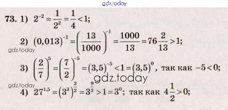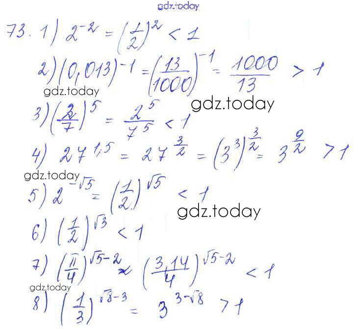 Ответы к Решение к упражнениям 73 Учебнику по Алгебре для 10-11 класса Алимов, Ткачева Базовый и углубленный уровень Просвещение 2015