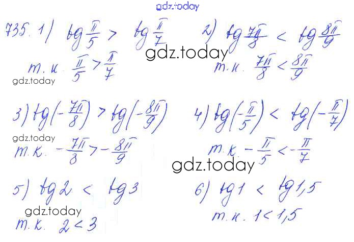 Ответы к Решение к упражнениям 735 Учебнику по Алгебре для 10-11 класса Алимов, Ткачева Базовый и углубленный уровень Просвещение 2015