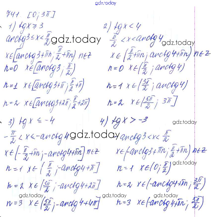 Ответы к Решение к упражнениям 741 Учебнику по Алгебре для 10-11 класса Алимов, Ткачева Базовый и углубленный уровень Просвещение 2015