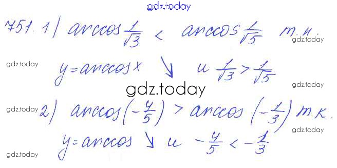 Ответы к Решение к упражнениям 751 Учебнику по Алгебре для 10-11 класса Алимов, Ткачева Базовый и углубленный уровень Просвещение 2015